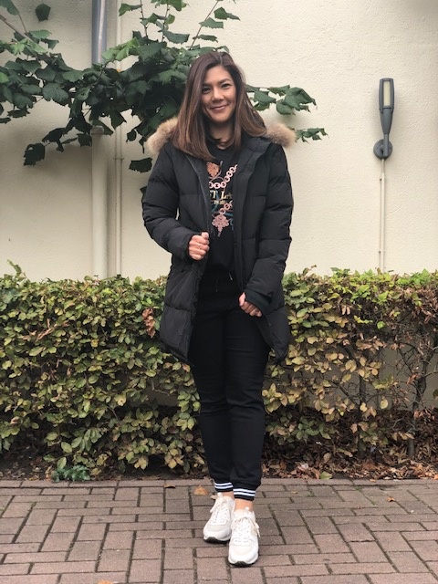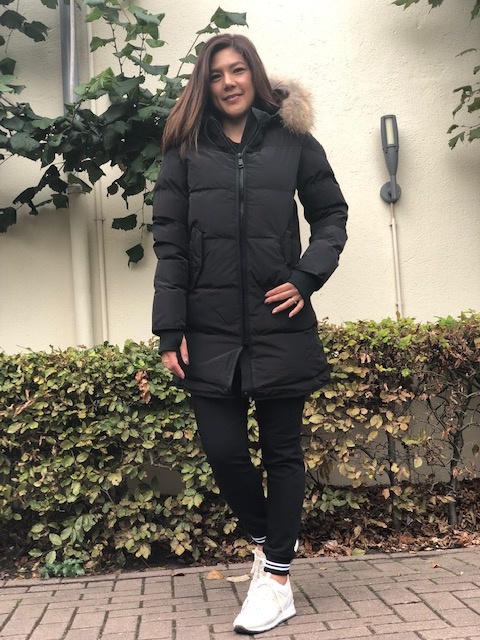 De Jade jacket is een wat langere jas. De jas heeft een capuchon met een bontkraag. De bontkraag is afritsbaar. Op de naden is een bies bevestigd. De jas heeft twee steekzakken, die beide een dubbele zak hebben.