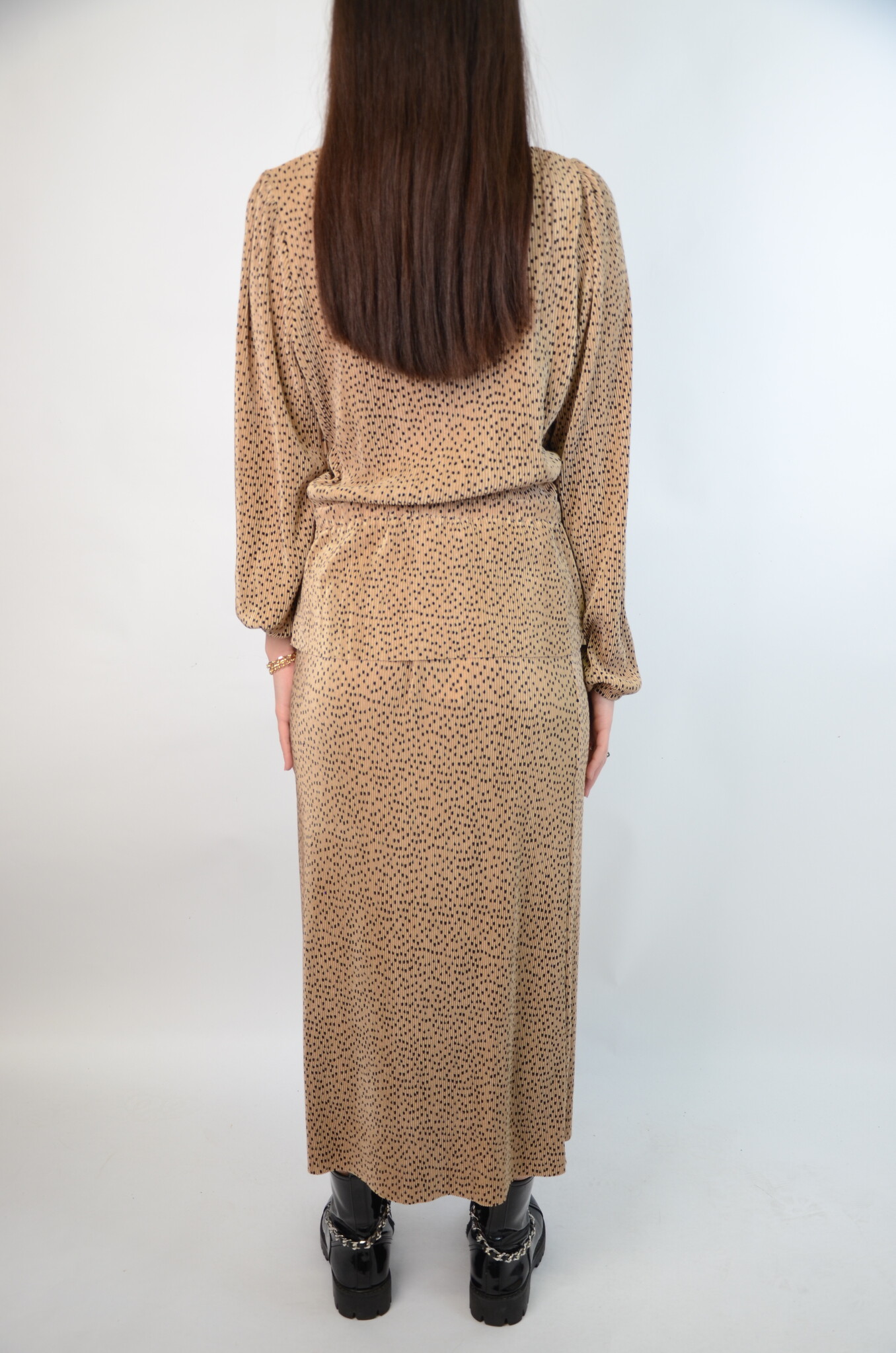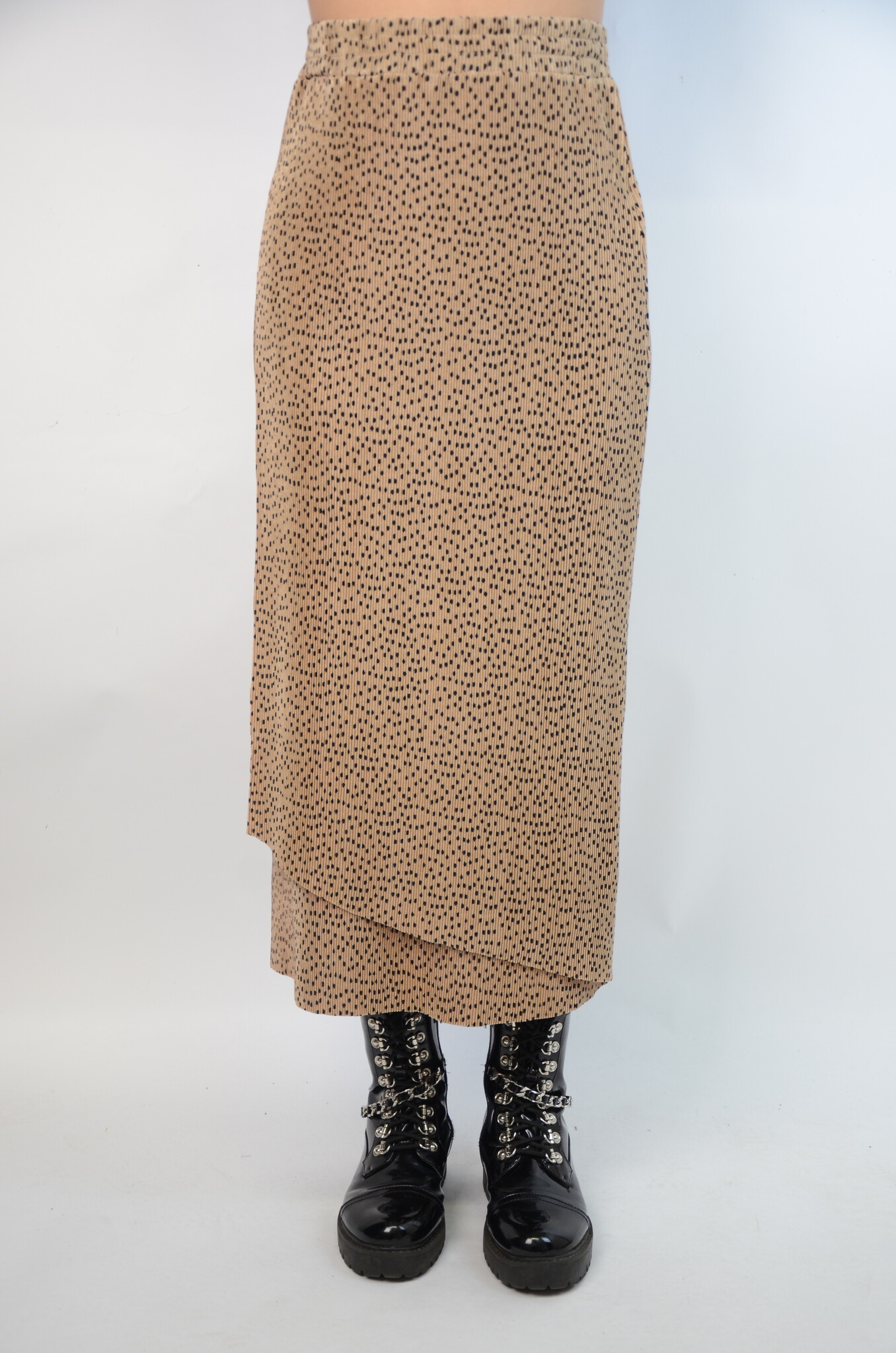 Deze rok past samen bij de top en zijn samen te koop voor maar 60,00. Deze rok heeft een elastieke band aan de bovenkant. en een stippen patroon.