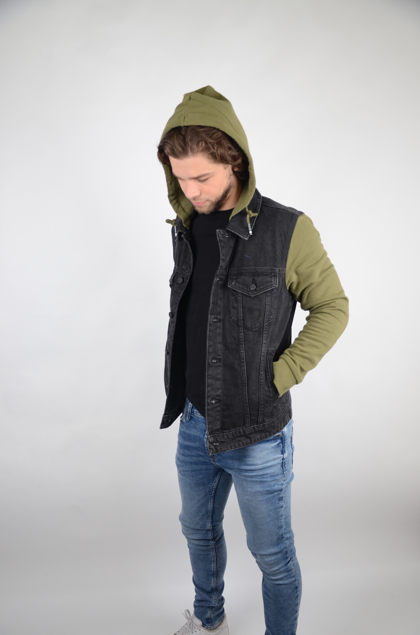 Deze stoere Denim Hood van het welbekende herenmode merk Only & Sons is een echte eyecatcher met zijn stoere denim in het midden en comfortabele stof bij de mouwen is dit een item om uw outfit helemaal compleet te maken. Deze jacket sluit met een knoopsluiting heeft een capuchon en die strakker en losser te maken met een koord. Verder heeft dit artikel 2 steekzakken en 2 borstzakken de borstzakken sluiten ook met een knoopsluiting. Kortom mooi combinatie van de kleuren zwart en groen om uw outfit compleet te maken.
