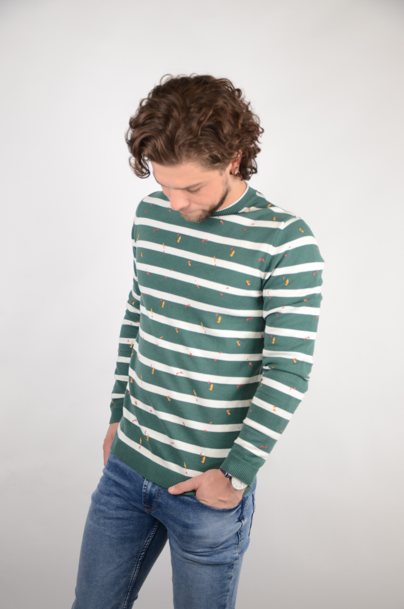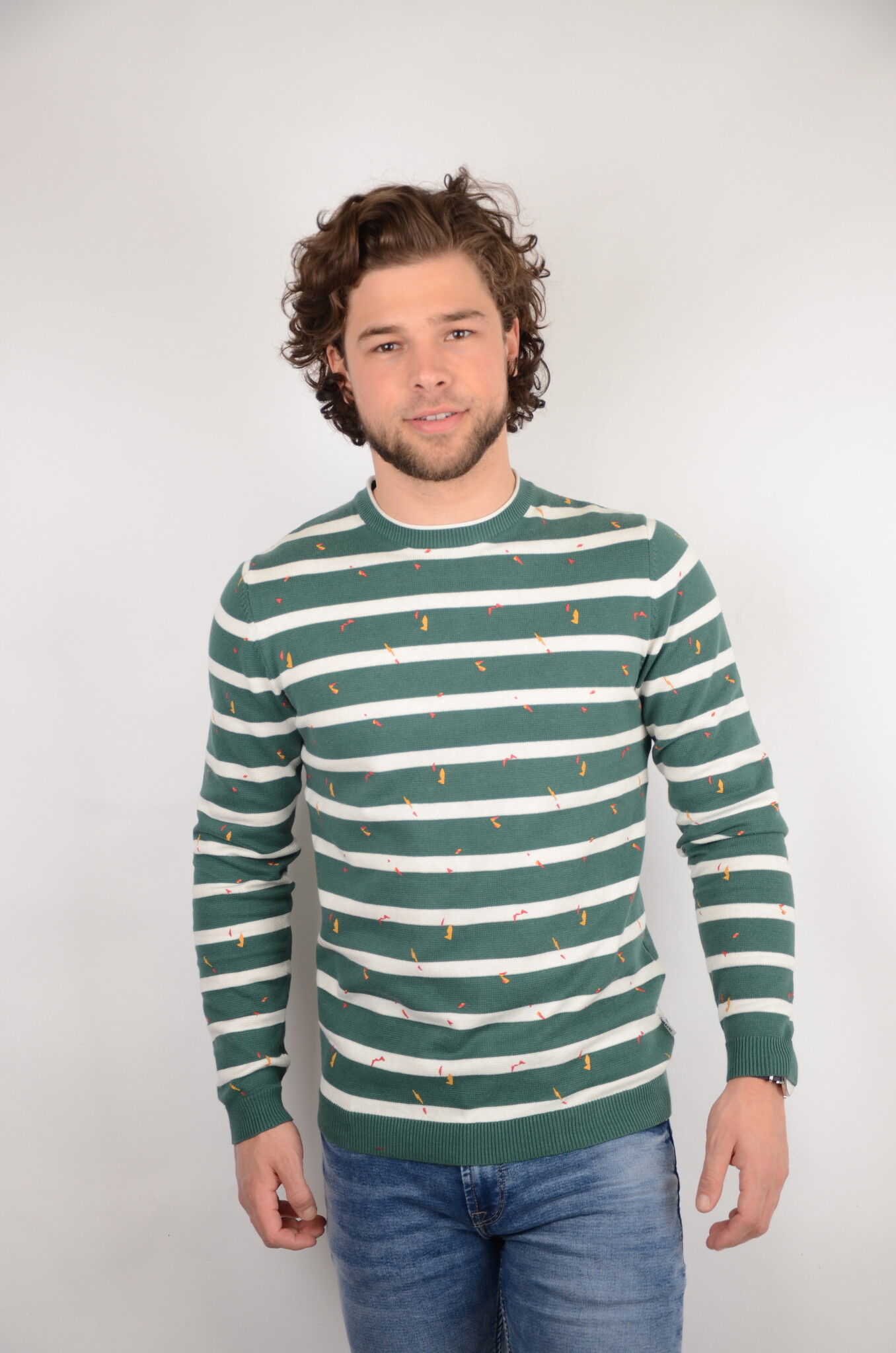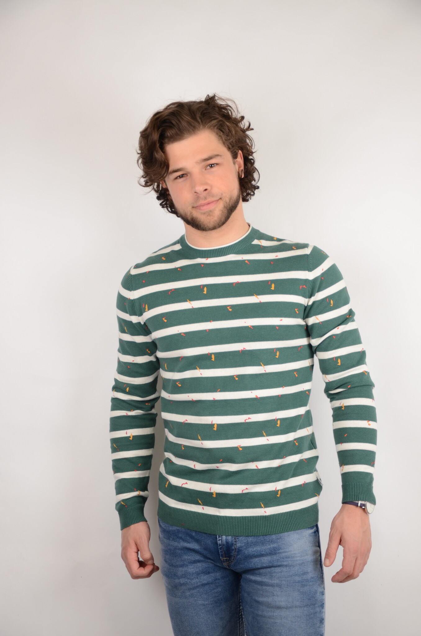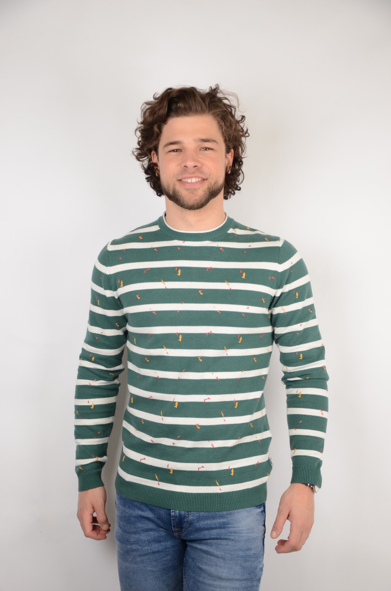 Deze heren sweater met horizontale strepen van het herenmode merk Only & Sons is een echte eye-catcher door de leuke print en lekkere stof is dit een longsleeve die dagelijks gedragen kan worden. Dit model heeft een ronde kraag en bij het uiteinde van de mouwen is de stof iets strakker waardoor het artikel in de perfecte pasvorm valt. Dit model is makkelijk te combineren met een leuke jeans en een echte aanrader voor uw garderobe.