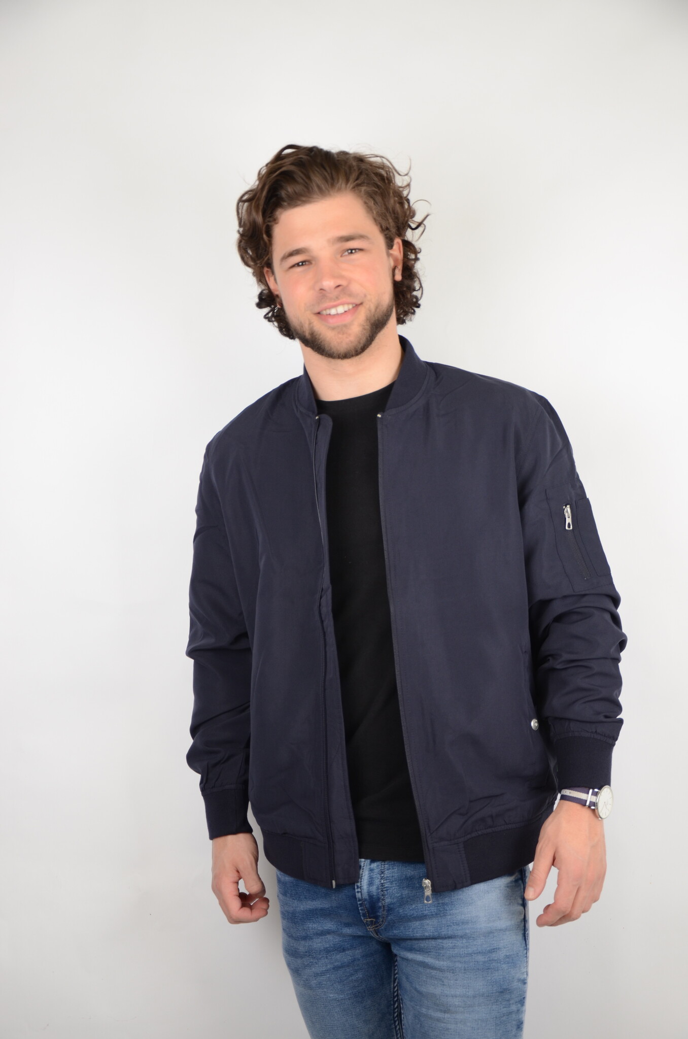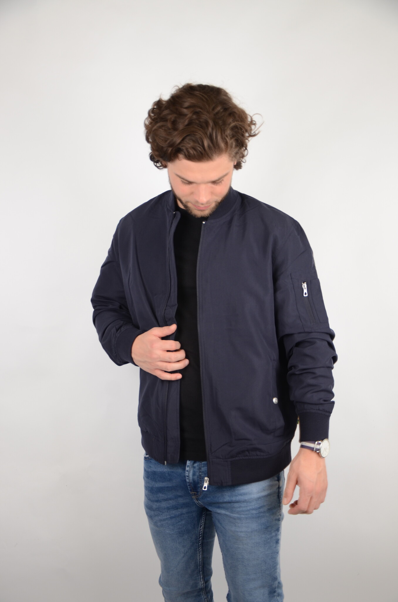 Deze heren bomber van het herenmode merk Only & Sons is een echte aanrader voor uw garderobe deze bomber is altijd te dragen op een leuk T-shirt en met een stoere spijkerbroek. Deze bomber heeft een donker blauwe kleur heeft geen capuchon en sluit met een ritssluiting verder is heeft dit model 2 steekzakken en een kleine zak op de linker bovenarm.