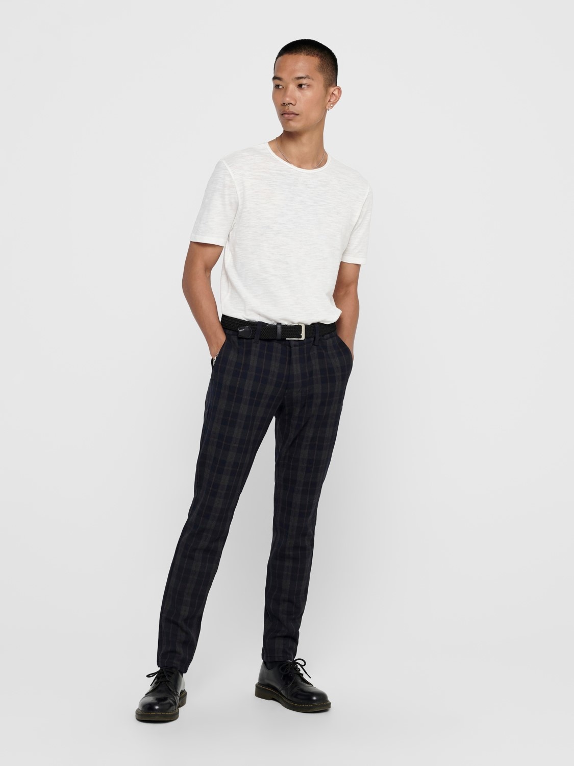 Deze mark pant van het stoere merk Only & Sons is een hele nette broek. Deze broek is uitermate comfortabel en bewegelijk door de viscose mix die aan de broek is toegevoegd. Deze broek is te combineren met een mooie nette blouse of blazer en met een paar stoere sneakers, en dat zit deze pants nog lekker ook. Dit model is een 4 pocket model met 2 steekzakken en 2 achterzakken. De achterzakken sluiten met een knoop sluiting en de broek zelf sluit met een knoop ritssluiting.