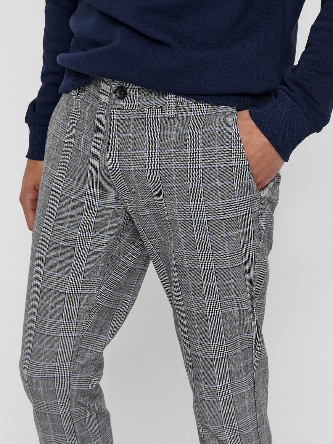 Deze mark pant van het stoere merk Only & Sons is een hele nette broek. Deze broek is uitermate comfortabel en bewegelijk door de viscose mix die aan de broek is toegevoegd. Deze broek is te combineren met een mooie nette blouse of blazer en met een paar stoere sneakers, en dat zit deze pants nog lekker ook. Dit model is een 4 pocket model met 2 steekzakken en 2 achterzakken. De achterzakken sluiten met een knoop sluiting en de broek zelf sluit met een knoop ritssluiting.