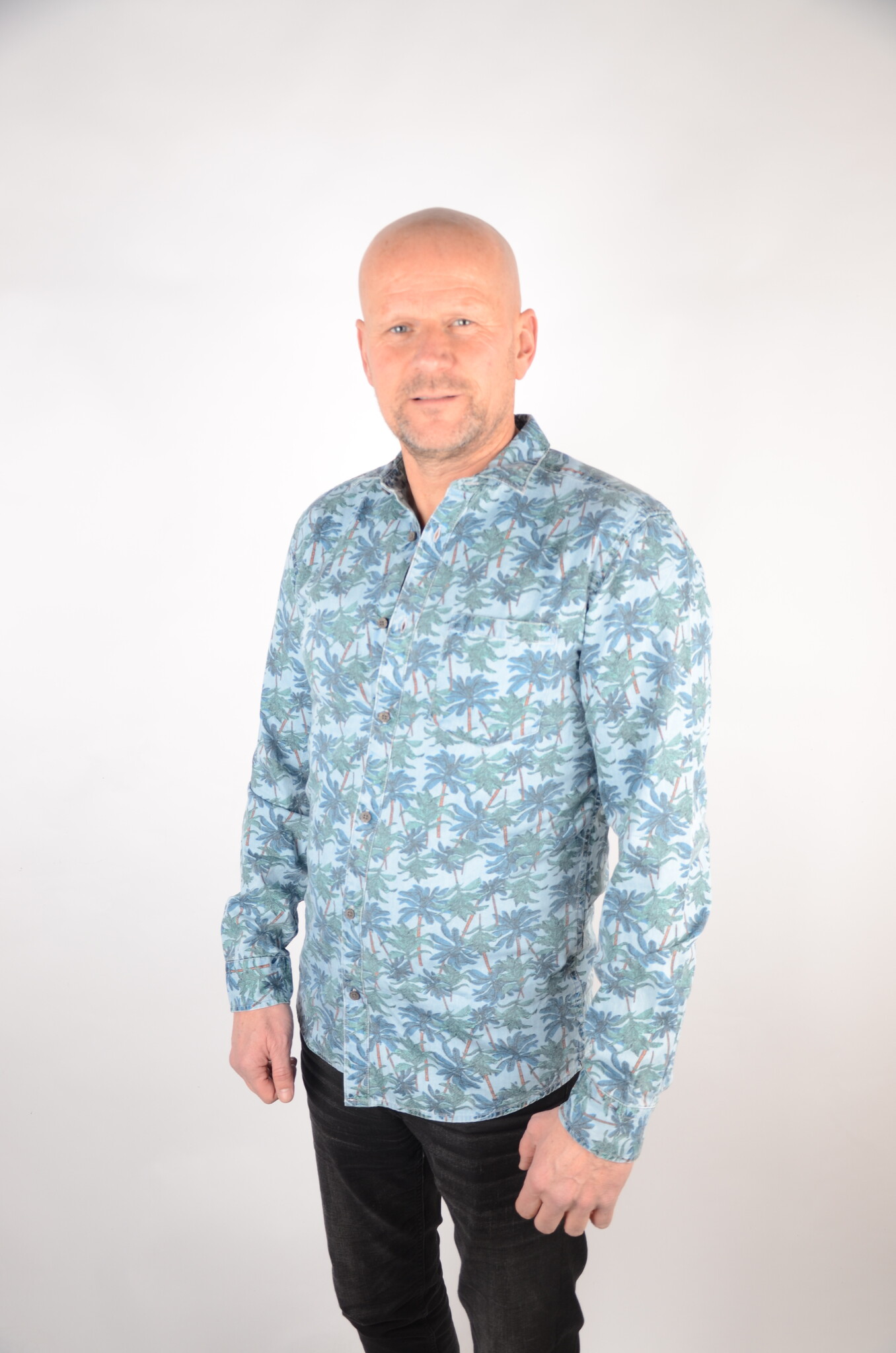 Printed Chambray Shirt Light Blue Denim 22012337