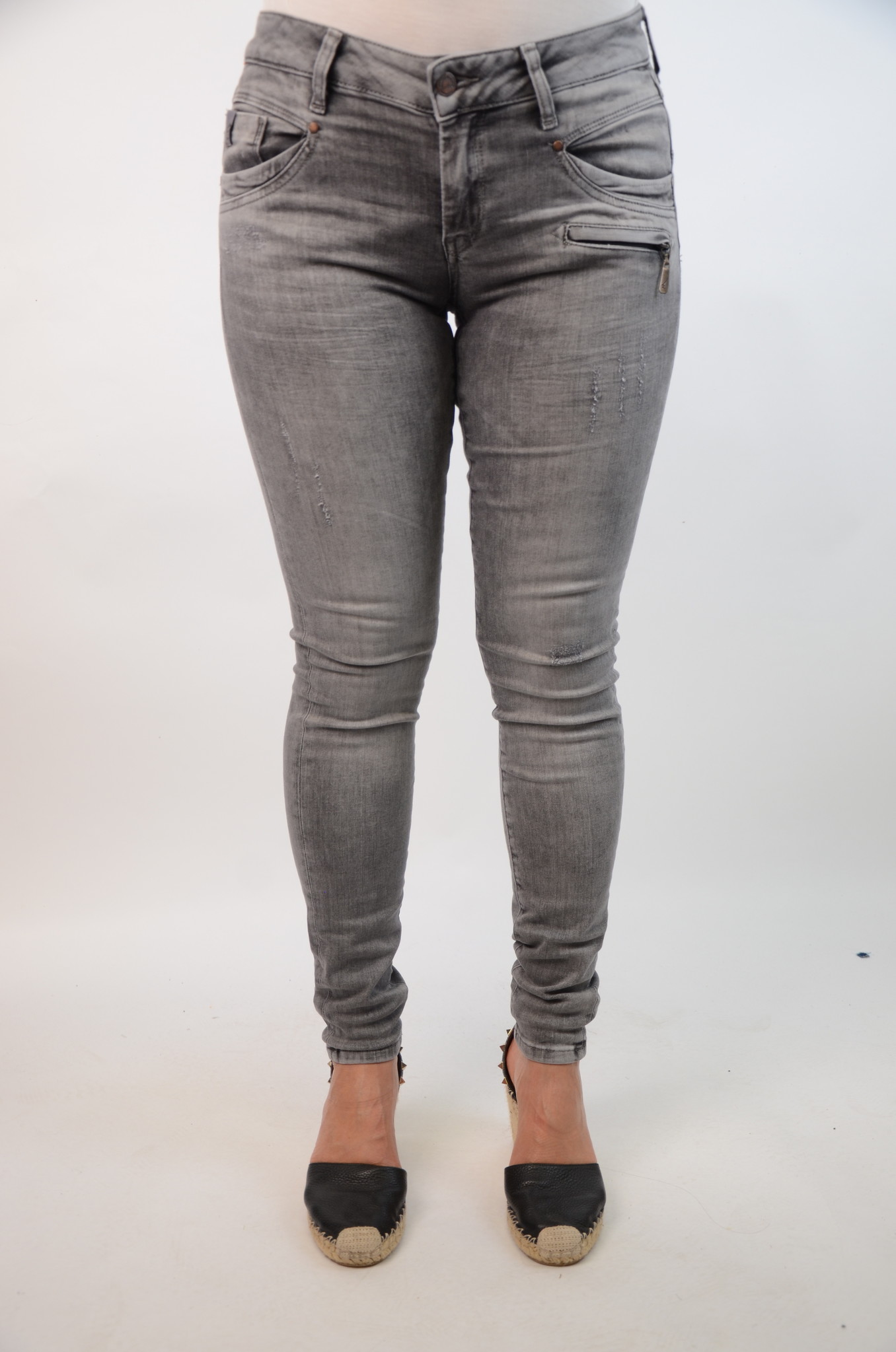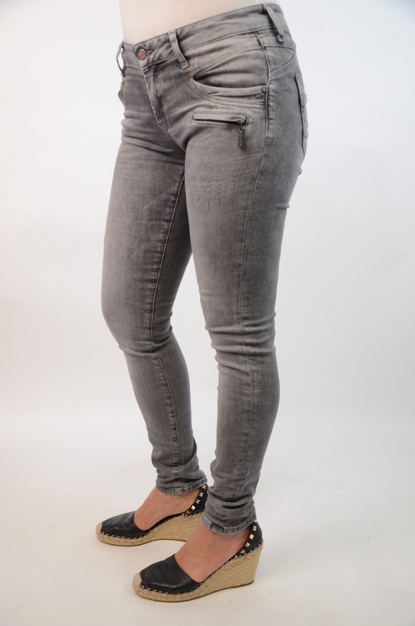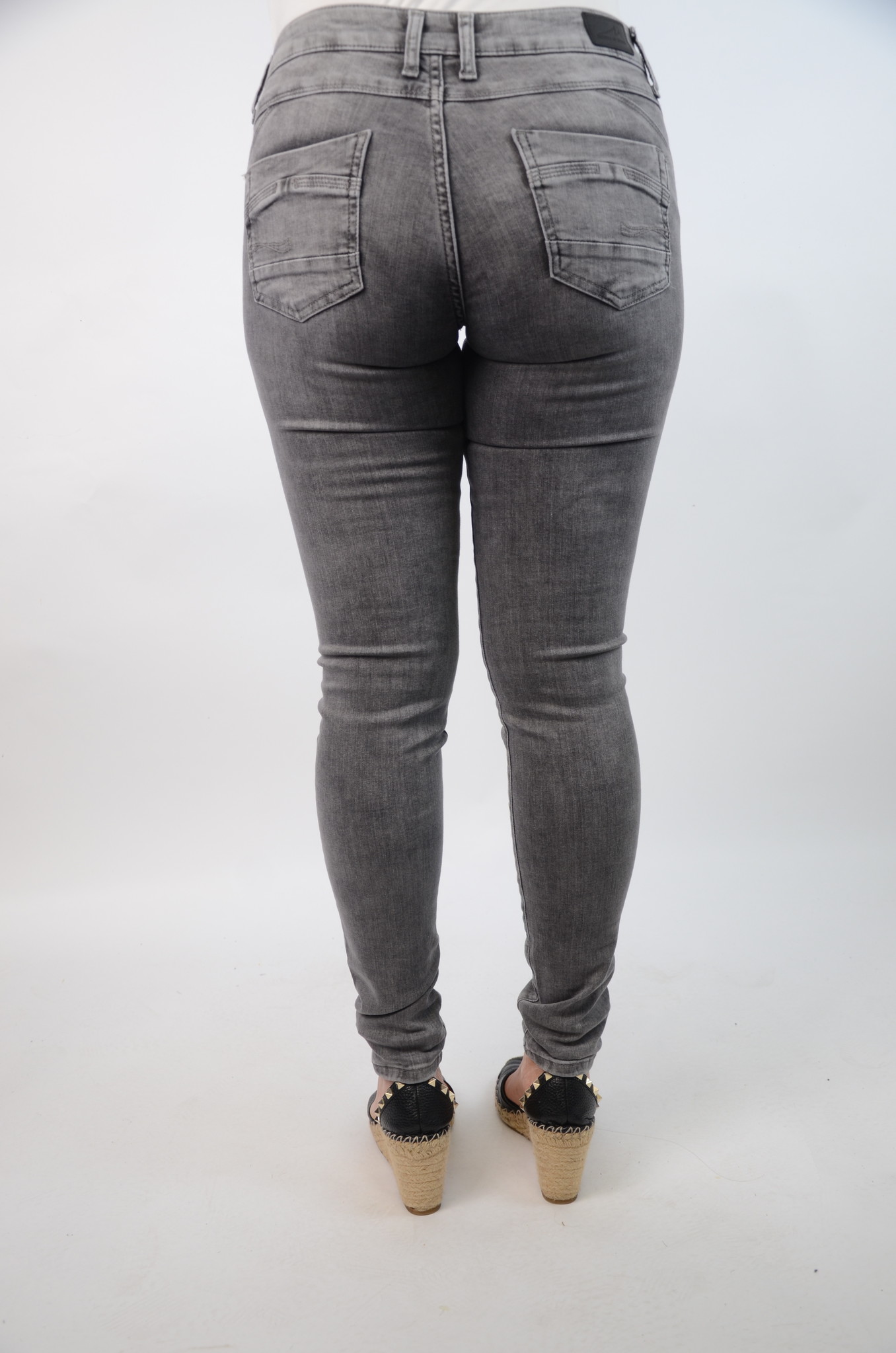 Deze grijze dames jeans van het spijkerbroeken merk M.O.D oftewel Miracle Of Denim deze skinny fit is erg comfortabel en makkelijk in te bewegen door de katoenmix die aan de broek is toegevoegd. Deze denim is een 5 pocket model met 2 steekzakken en twee door M.O.D gedesignde achterzakken plus een money-pocket en een kleine rits op het bovenbeen. Deze jeans sluit met een knoop ritssluiting.